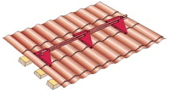 Монтаж снегозадержателя включает в себя несколько этапов. В первую очередь в отверстия, просверленные в креплениях вставляется труба. Далее производится фиксация снегозадержателя при помощи саморезов. Крепление осуществляется к обрешётке в нижнюю часть кровельной волны через резиновую прокладку.