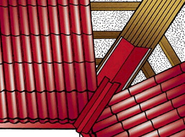 Укладка профнастила или металлочерепицы производится после предварительной размётки и подрезания. Как правило, стык кровельных листов выглядит неэстетично, поэтому требует декоративной обработки, заключающейся в укладке планки верхней ендовы.