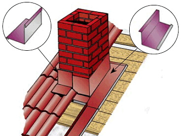 Первый шаг — размётка верхней кромки планки на стенках трубы. После того, как место стыка будет намечено, болгаркой пробивают канал, именуемый штробой. Прежде чем приступить к следующему этапу, штробу очищают от пыли и промывают. Затем, начиная с нижней стенки трубы, устанавливают планку примыкания и фиксируют её при помощи саморезов.