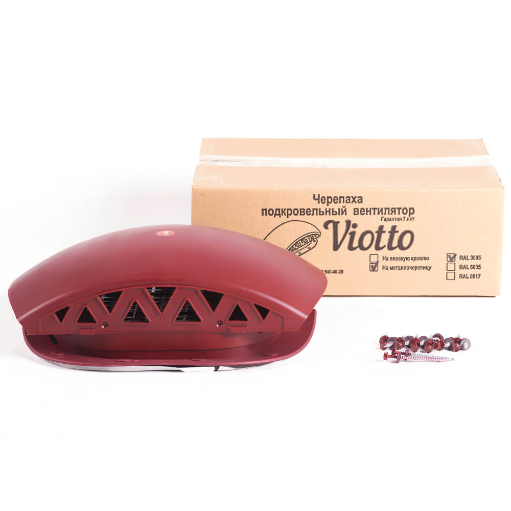 Подкровельный вентилятор "Черепаха" Viotto RAL 3005 Красное Вино для кровли из металлочерепицы в Иваново