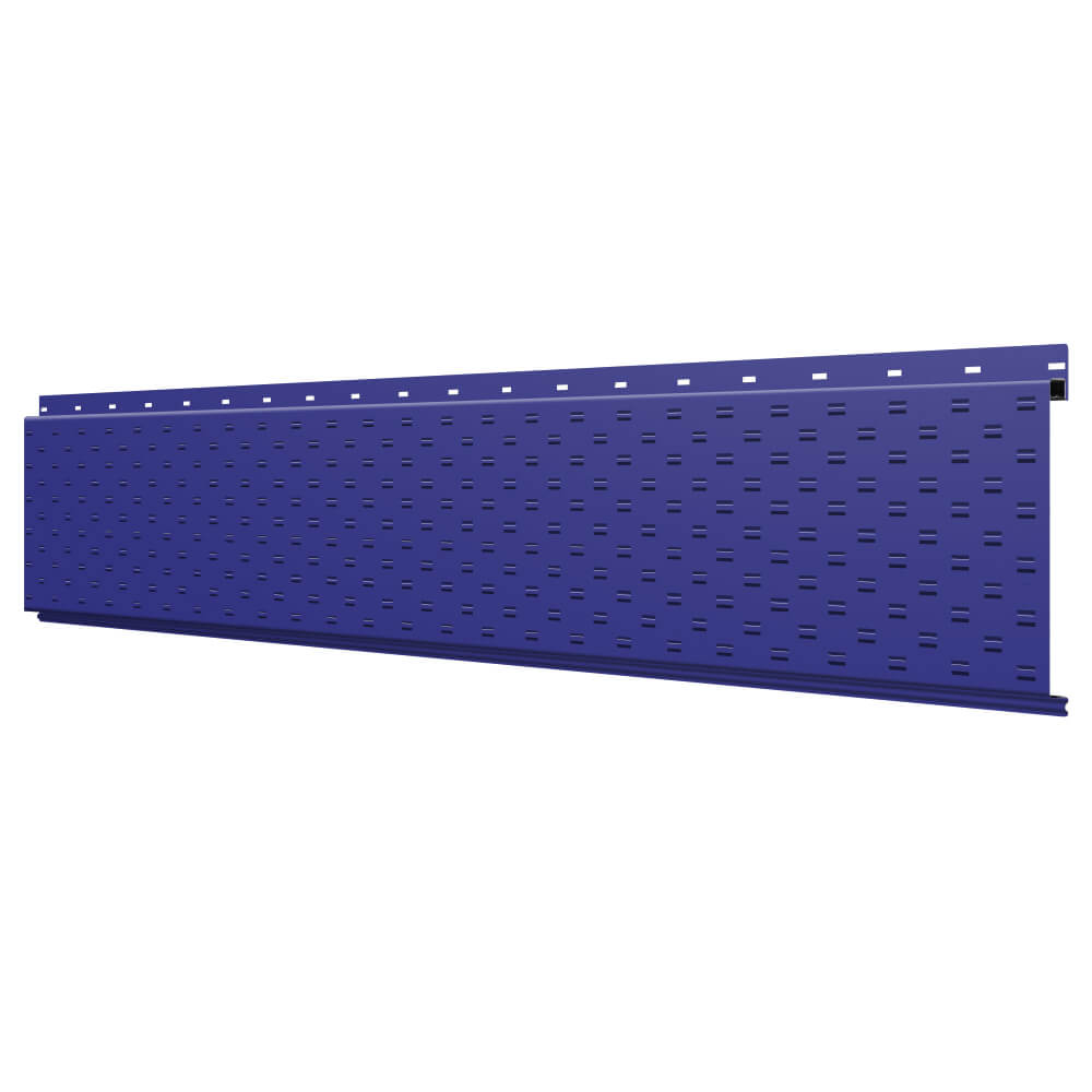 Линеарная потолочно-стеновая панель с ПЕРФОРАЦИЕЙ для вентиляции цвет RAL5002 Синий Ультрамарин применяется в качестве софитов для подшивы крыши, наружной и внутренней отделки потолков, стен, фронтонов фасада дома в Иваново.