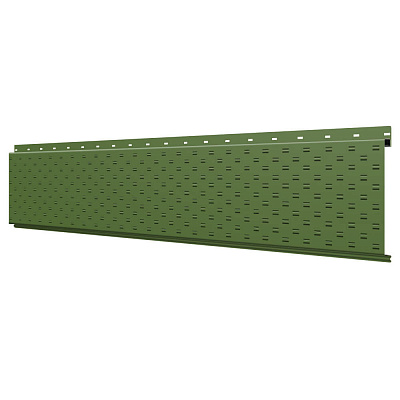 Линеарная потолочно-стеновая панель с ПЕРФОРАЦИЕЙ для вентиляции цвет RAL6002 Зеленый Лист применяется в качестве софитов для подшивы крыши, наружной и внутренней отделки потолков, стен, фронтонов фасада дома в Иваново.