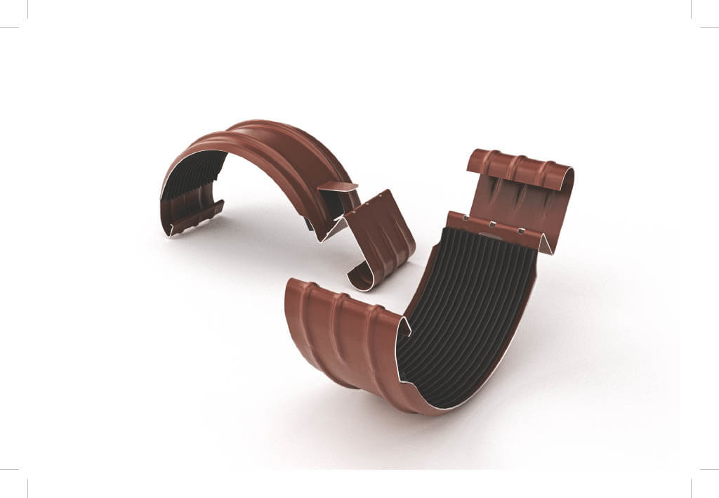 Элемент водосточной системы, который обеспечивает герметичное соединение желобов или желоба с углами. Преимущества: резиновый уплотнитель обеспечивает герметичность соединения, ребра жесткости обеспечивают дополнительную надежность конструкции. Втулка усиливает место соединения желобов.
