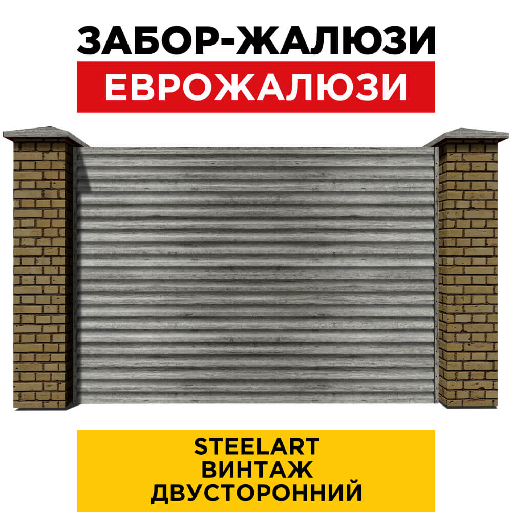 Ламель Еврожалюзи металлическая S-образная, цвет под дерево Винтаж SteelArt Россия двухстороннее покрытие, длина любая кратно 1см под заказ - для забора-жалюзи, беседки, перголы в Иваново