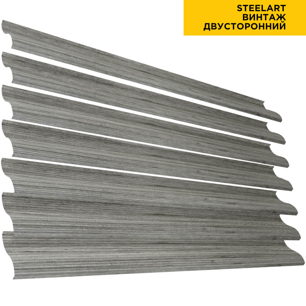 Ламель Еврожалюзи металлическая S-образная, цвет под дерево Винтаж SteelArt Россия двухстороннее покрытие, длина любая кратно 1см под заказ - для забора-жалюзи, беседки, перголы в Иваново.