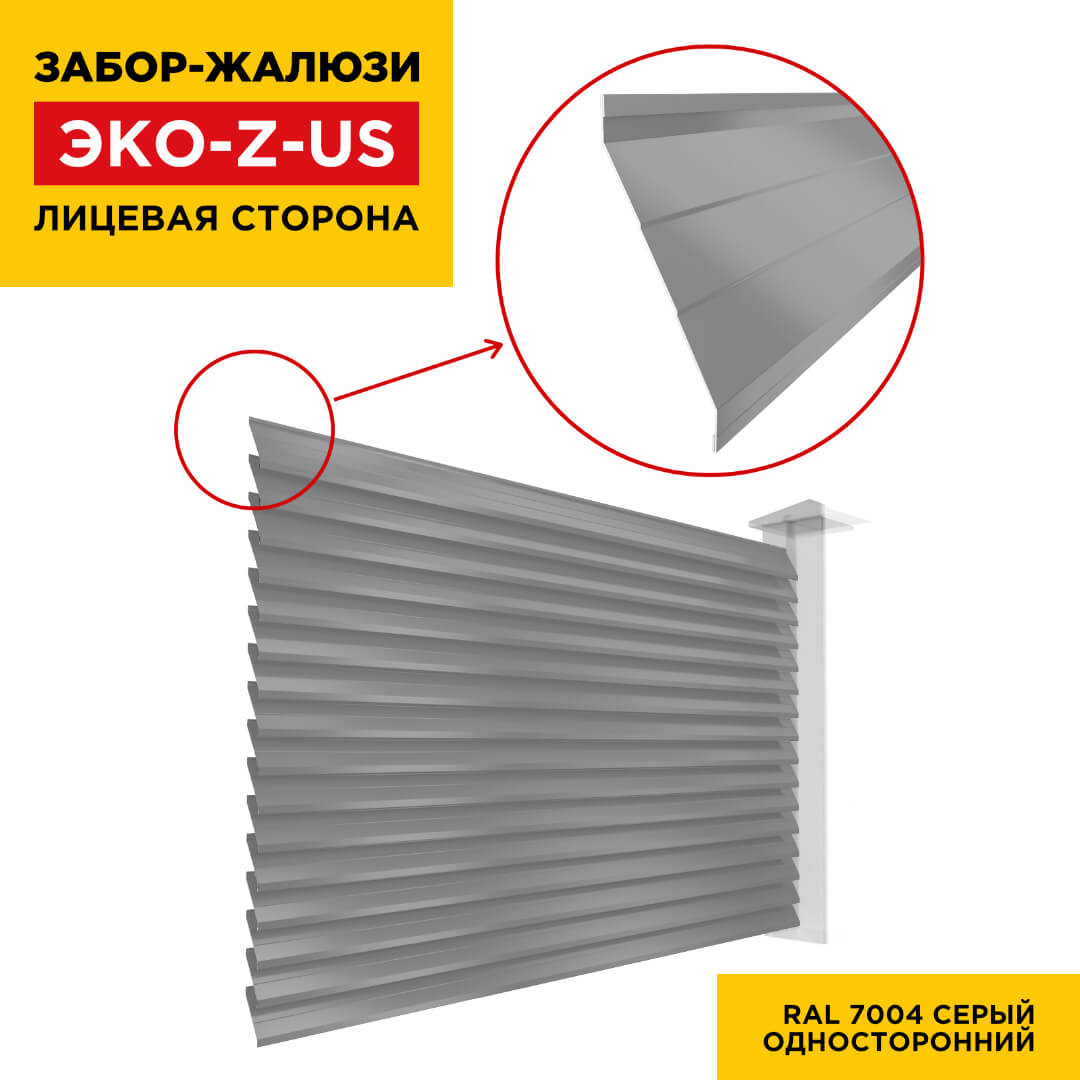 Ламель ЭКО-Z-US усиленная RAL7004 Серый для забора-жалюзи