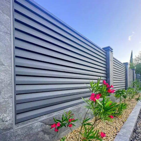 Горизонтальный забор с ламелями «Реснички» в оттенке RAL 7024 MATTE Серый Графит матовый смотрится стильно и современно, придавая участку завершённый и аккуратный вид. Благодаря двухсторонней форме ламели ограждение выглядит одинаково как с улицы, так и со стороны двора, что делает его отличным решением для тех, кто ценит эстетику и гармонию в деталях. Матовая поверхность подчеркивает глубину цвета и создает эффект респектабельности, горизонтальное расположение ламелей визуально расширяет пространство и добавляет лёгкости общей композиции.