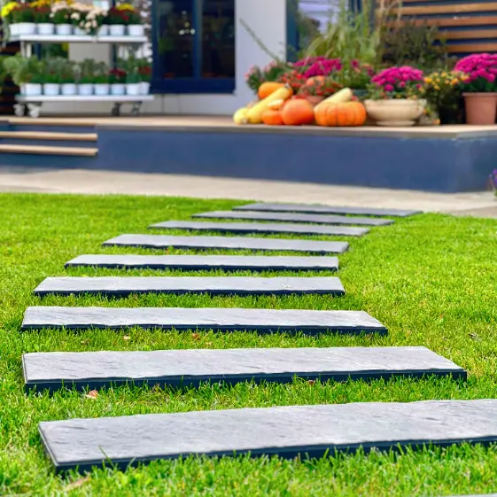 Композитная шаговая плита Stone Графитовый Серый стала идеальным дополнением садового участка. Насыщенный Серый Графитовый цвет гармонично вписался в окружающий ландшафт, подчеркивая строгость и элегантность дизайна. Плита не только выполняет практическую функцию, обеспечивая удобство передвижения, но и служит стильным акцентом, добавляя участку современный и ухоженный вид.